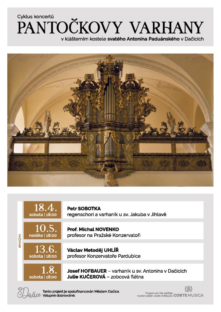 Cyklus koncertů probíhá na nově restaurovaných barokních varhanách Václava Pantočka.