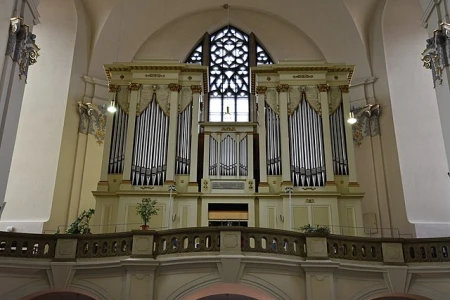 I. manuál (56 tónů) 1. Principal 16' 2. Bourdun 16' 3. Principal 8' 4. Flétna dvojitá 8' 5. Kryt hrubý 8' 6. Gamba 8' 7. Roh kamzičí 8' 8. Salicional 8' 9. Kvinta 5 1/3' 10. Oktava 4' 11. Flétna dutá 4' 12. Flétna rourková 4' 13. Fugara 4' 14. Oktava špičatá 2' 15. Mixtura 6× 5 1/3' 16. Cornet 3-5× 2 2/3' 17. Kvinta šumivá 2× 2 2/3' 18. Cimbal 2-3× 2' 19. Akuta 4-6× 1 1/3' 20. Bombard 16' 21. Trompeta 8' 22. Clairon 4' 23. I 4' 24. II/I 8' 25. II/I 4' 26. III/I 16' 27. III/I 8' 28. III/I 4'