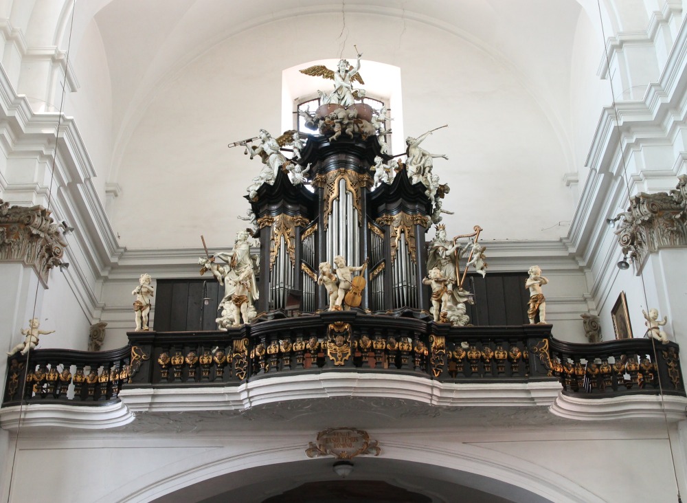 Zachovalý a hodnotný nástroj Jindřicha Schiffnera je vestavěný do barokní skříně Tomáše Schwarze (1695-1754). |