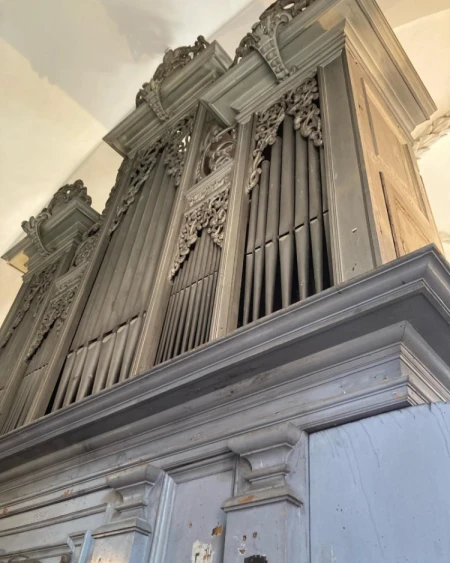 I. Hlavní stroj (C-c3, krátká oktáva) Principal 8' Salicional 8' Portunal 8' Copel major 8' Octav 4' Violetta 4' Copel minor 4' Quint 3' Sup octav 2' Quindecim 1 1/2' Mixtur 4x 1' II. Zadní pozitiv (C-c3, krátká oktáva) Copel major 8' Prinzipal 4' Flauttraver 4' Octav 2' Quint 1 1/2' Mixtur 2x 1' Pedál (C-a0, krátká oktáva, 18 tónů) Bordon Bass 16' Sub Bass 16' Octav Bass 8' Quint Bass 6' Sup Octav 4' Manuálová přetahovací spojka