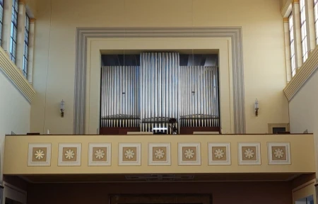 I. manuál (C-g3, 56 tónů) 10. Trompeta (2020) 8' 11. Cornet 5× (2020) 12. Principál 16' 13. Mikstura 5× 14. Oktáva 2' 15. Oktáva 4' 16. Flétna oktávová 4' 17. Principál 8' 18. Gamba 8' 19. Kamzičí roh 8' 20. Flétna dutá 8' 21. Kryt 8' 22. Salicionál 8'