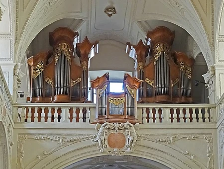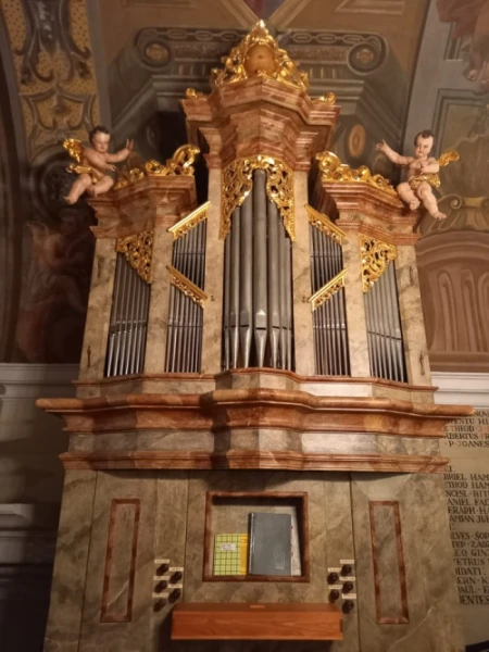 Menší, ale dobře dochované varhany Abrahama Starka (1659-1709). Stroj pozitivu má neobvyklou rejstříkovou dispozici, kde převažují smykavé hlasy, což u barokních varhan není obvyklé. V r. 1939 byly varhany o několik...