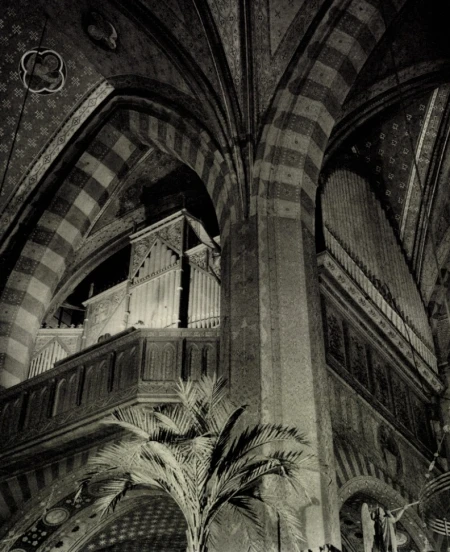 Varhany nesou znaky několika časových období. Hlavní stroj byl postaven neznámým varhanářem patrně na začátku 18. století. Skříň hlavního stroje je obklopena iluzivními malbami dalších varhanních skříní, pocházející...